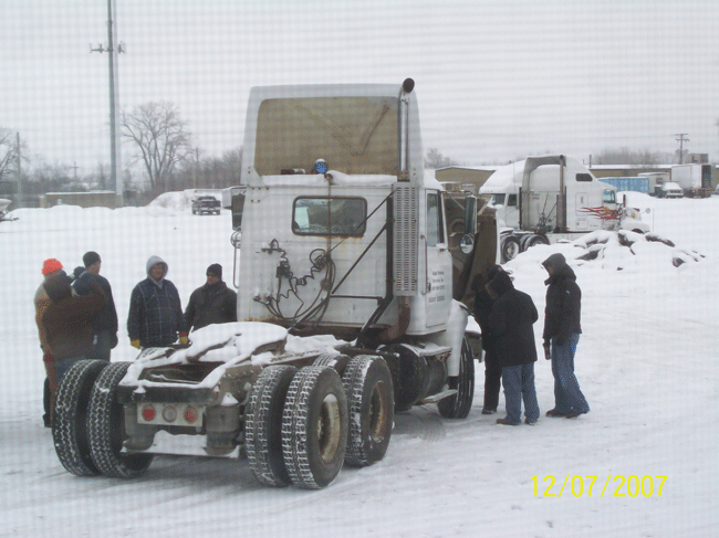 Students inspect a yard truck during pre-trip - December 2007